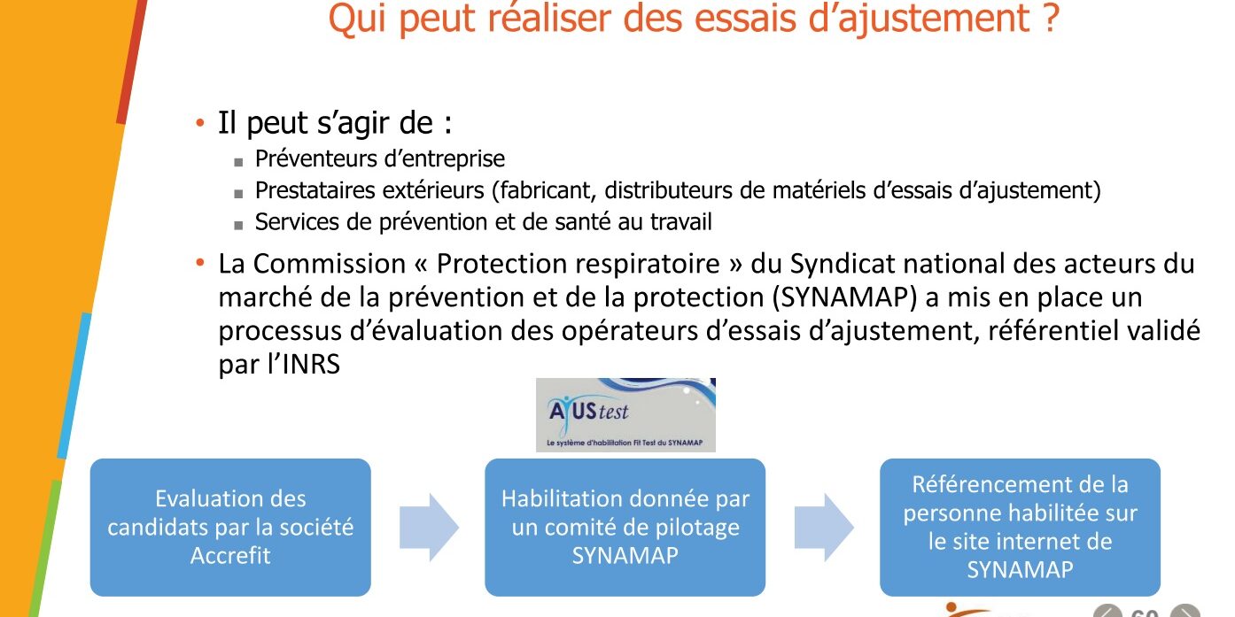 Merci à l’INRS pour la mise en avant d’ « AJUStest » : processus du SYNAMAP pour l’évaluation des personnes amenées à effectuer des tests d’ajustement.